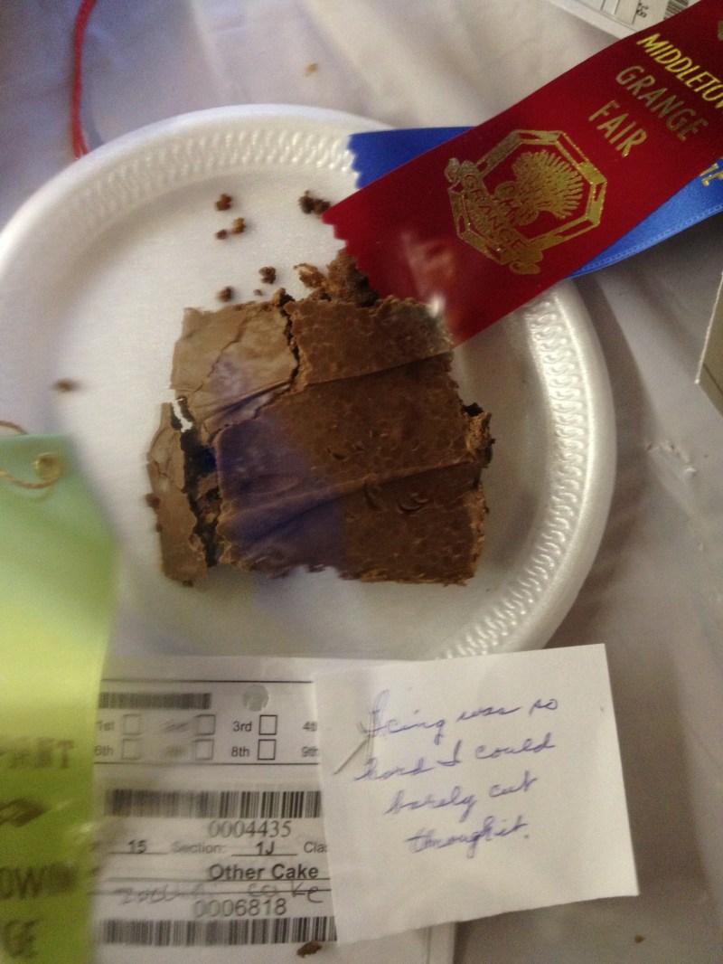Middletown Grange Fair (12) Published August 16, 2013 at 2448 × 3264 in Things I Learned at the Grange Fair ← Previous Next → A brownie you can barely cut through? Now that’s a serious burn. Post a comment or leave a trackback: Trackback URL.